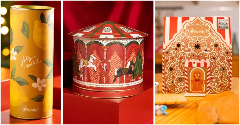 Biscoitê Lata Carrossel de Natal (R$ 169,90): Ficamos encantadas com a embalagem. A gente sabe que a Biscoitê tem um ponto super forte em surpreender nas latas e caixas, mas por essa a gente não esperava! Conforme viram no vídeo, é de fato uma caixinha de música que toca “Somewhere Over The Rainbow”, para levar todos a uma nostalgia sem tamanho. É tanto presenteável para adultos, quanto crianças, porque além de virar um objeto decorativo, dentro há cookies de três sabores natalinos: macadâmia com base de chocolate, baunilha e triplo chocolate. É para surpreender MESMO!