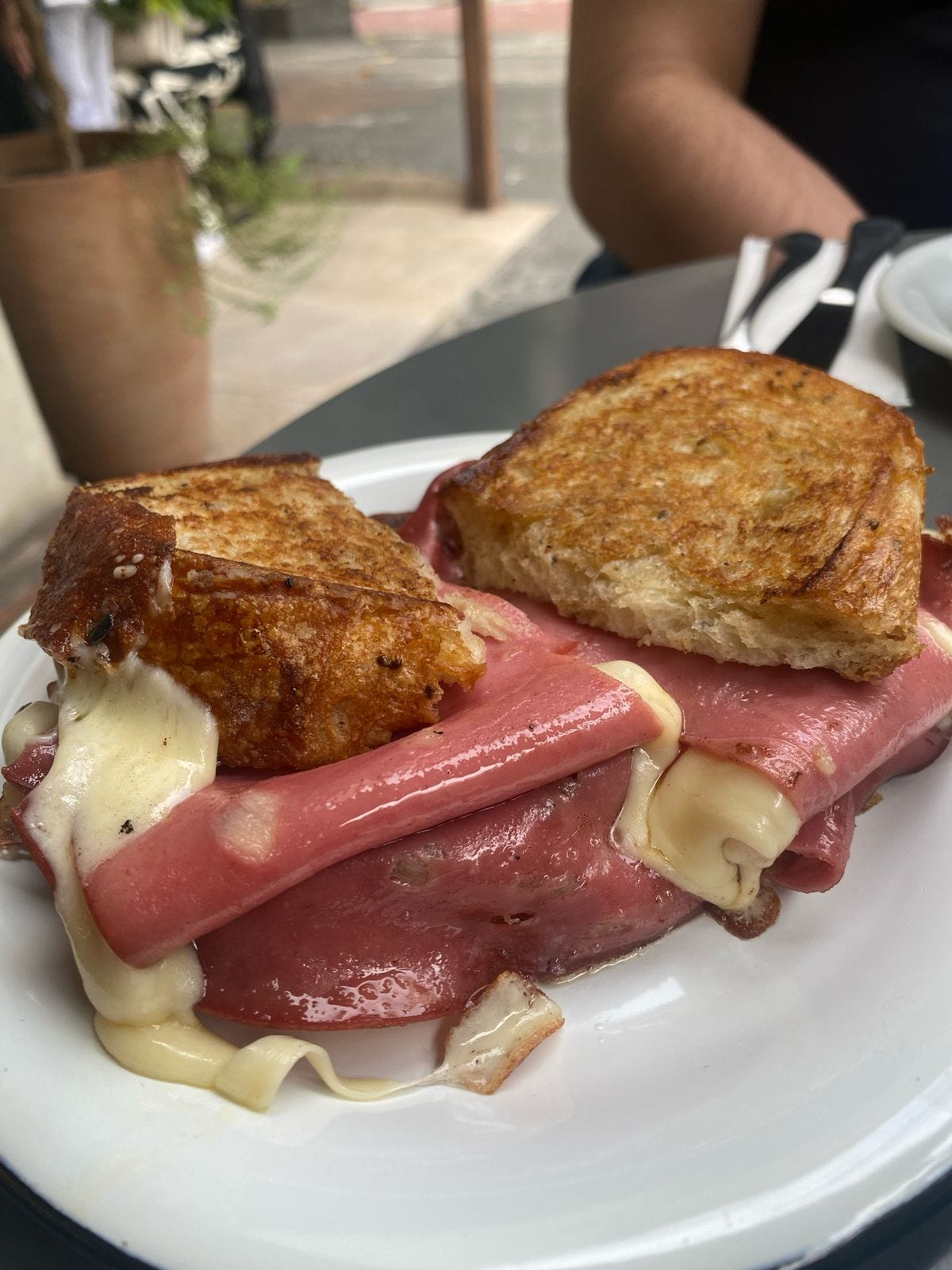 Precisamos iniciar a review falando do sanduíche que pedimos, que estava incrível! Pão de limão e chia com bastante queijo e mortadela importada. Amamos tanto que compramos o pão para levar para casa e tentamos reproduzir a receita. O pedido é obrigatório para quem ama aquela combinação de sabores e texturas!