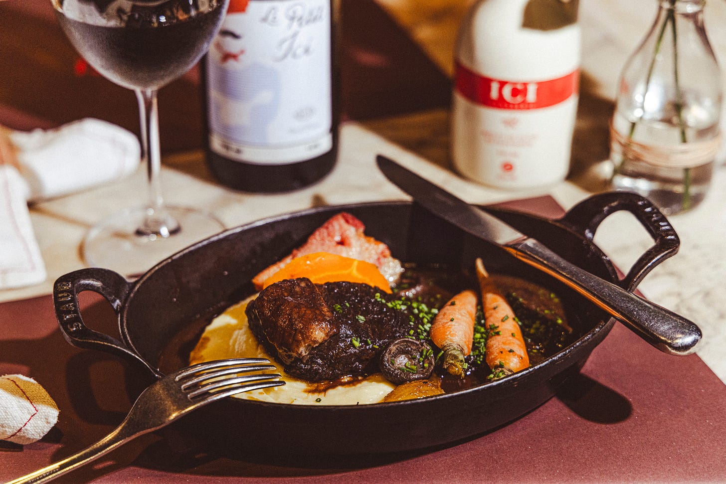 O ICI Brasserie, restaurante é todo moderninho e descolado, perfeito para momentos mais descompromissados. As opções de pratos são variadas, mas predominam clássicos franceses como o Boeuf Bourguignon (R$98), receita clássica que é considerada comfort food por lá. Ele consiste em uma carne cozida em baixa temperatura com molho de vinho tinto, bacon, cenoura, mini cebolas e cogumelo, e que é servido purê de batata.