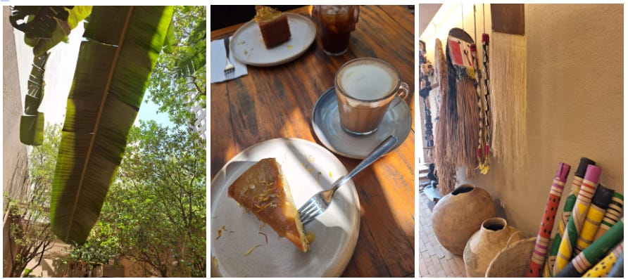 O bolo do dia era de laranja, um dos melhores e mais molhadinhos que já experimentamos, além de um capuccino com canela e outras especiarias. Não é o melhor que já tomamos, mas estava muito bom.