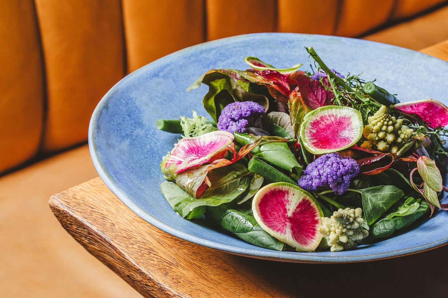 Pancs, beterraba assada, tangerina, coalhada de leite de ovelha, cebola e nozes