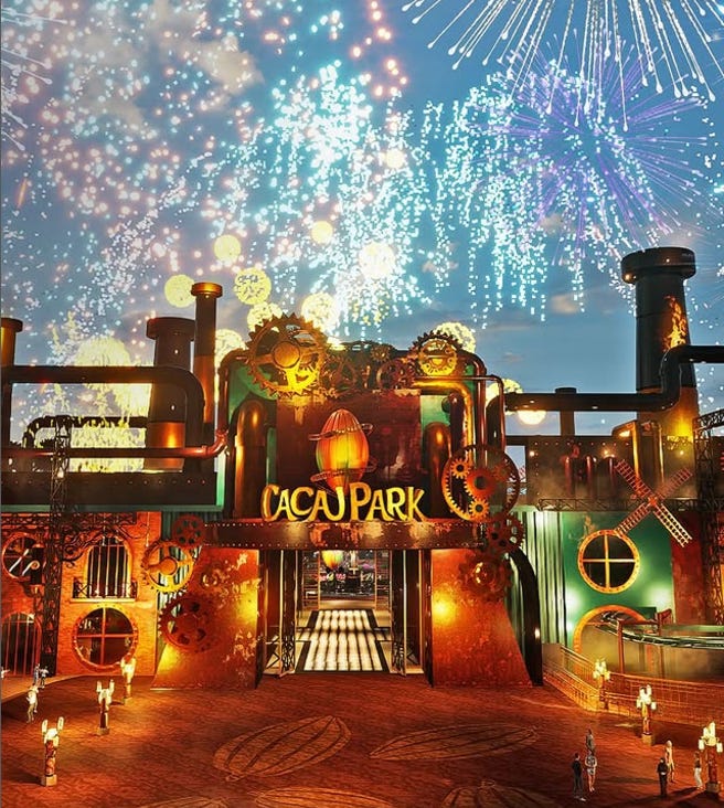 Inspirado em grandes parques temáticos internacionais, o projeto do Cacau Park contará com montanhas-russas, atrações aquáticas, brinquedos interativos e até uma fábrica de chocolates. O parque será dividido em áreas temáticas, cada uma com uma proposta única. Confira: