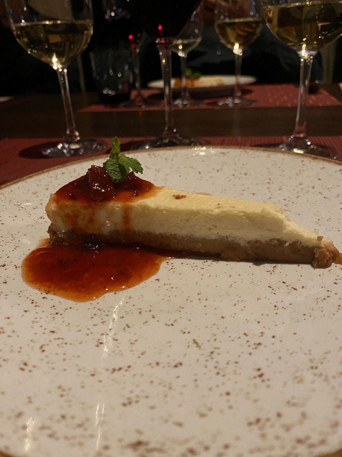 De sobremesa, um maravilhoso cheesecake de gengibre com calda de cupuaçu. Doce na medida certa e com um fundinho de gengibre bem leve e gostoso!