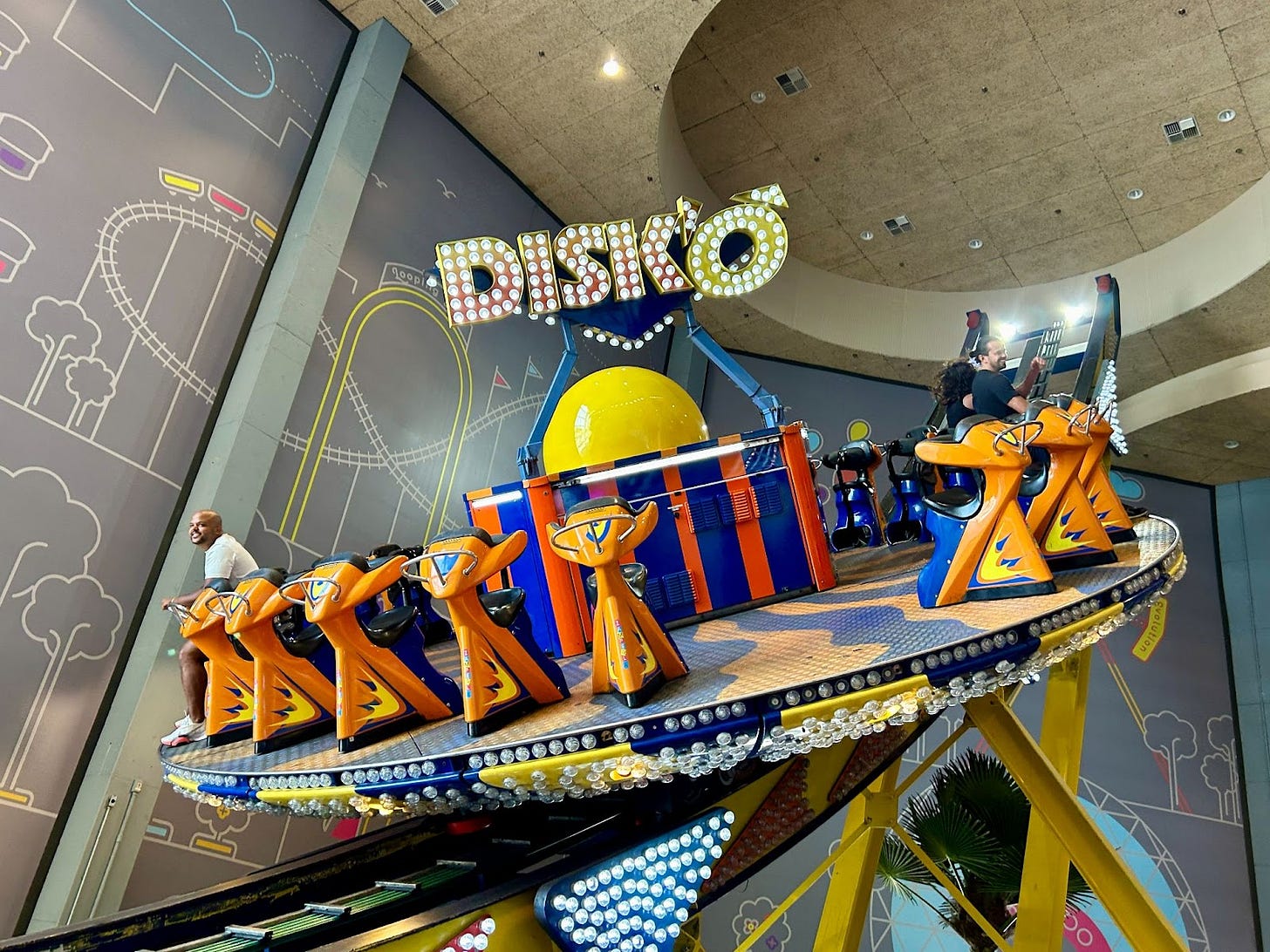 Sem dúvida nenhuma, a atração Disk’ô (R$10,90), é o destaque do empreendimento. Não tem quem fique inerte aos seus movimentos giratórios alucinantes, onde os visitantes embarcam em uma gôndola no formato de disco, que realiza movimentos 360º percorrendo um trilho em alta velocidade. Após alguns meses fora de operação, a atração retornou no dia 20/09 fazendo sempre muito sucesso entre os visitantes. Para quem está com os pequenos, passear no Carrossel (R$9,90) e se divertir na Auto Pista (R$9,90) é uma boa pedida. Para quem ainda não tem coragem de encarar brinquedos com uma certa altitude, a Spinning Coaster (RS 10,90) é uma montanha-russa de pequeno porte com curvas e giros no próprio eixo que garantem uma dose de emoção na medida certa, sem falar na fofura de um Chocomonstros enraizado no meio dos trilhos.