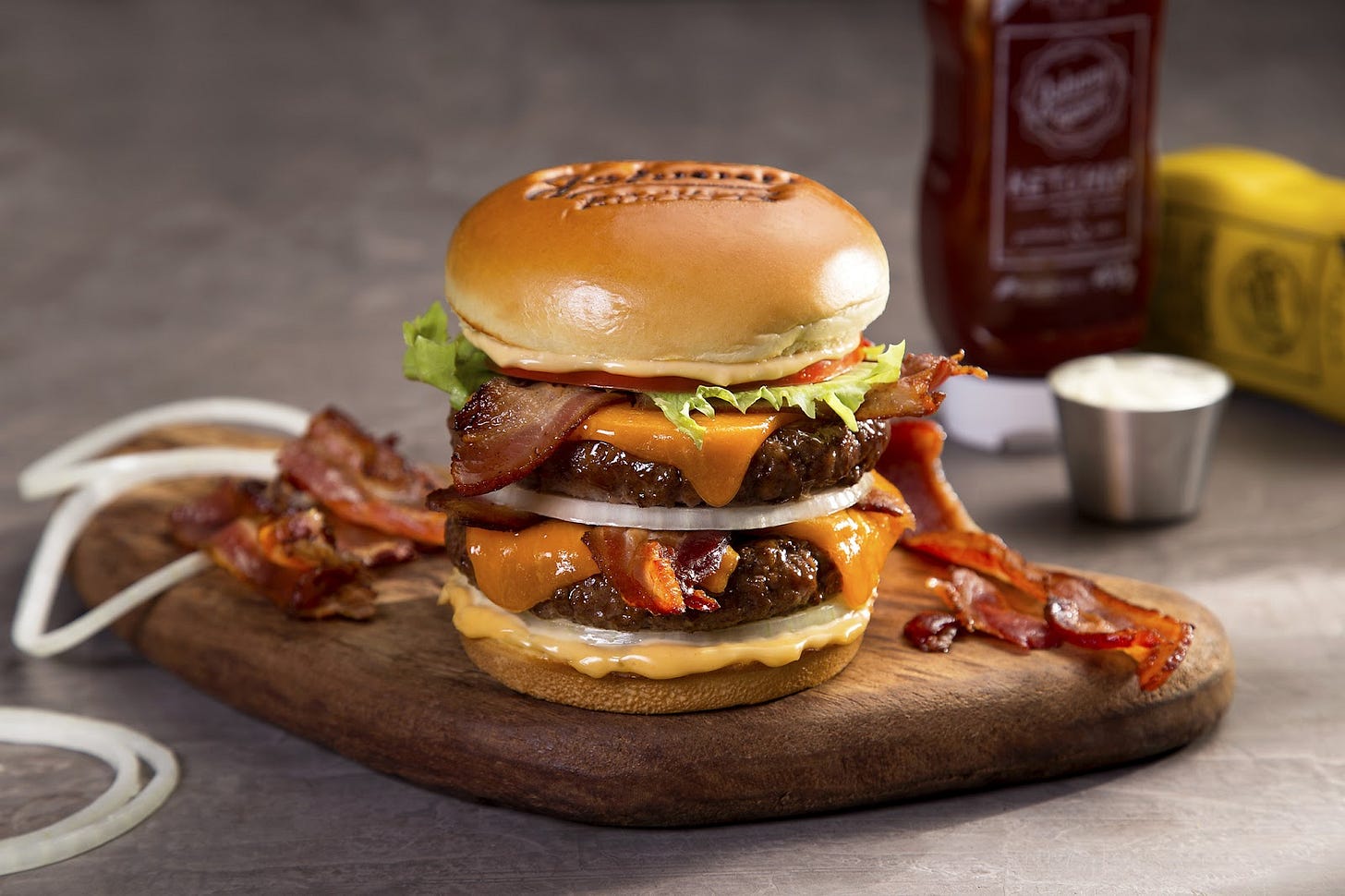 No Johnny Rockets, rede californiana de hamburguerias ambientadas na década de 50, o bacon é a estrela de diversos pratos, com destaque para o Bacon Cheddar, feito com hambúrguer angus 150g, bacon, tomate, cheddar, alface, cebola e molho especial no pão brioche. Acompanha American Fries. Disponível por R$ 49,90 na versão single (um hambúrguer) também possui a versão double, com 300g de carne por R$ 69,90.
