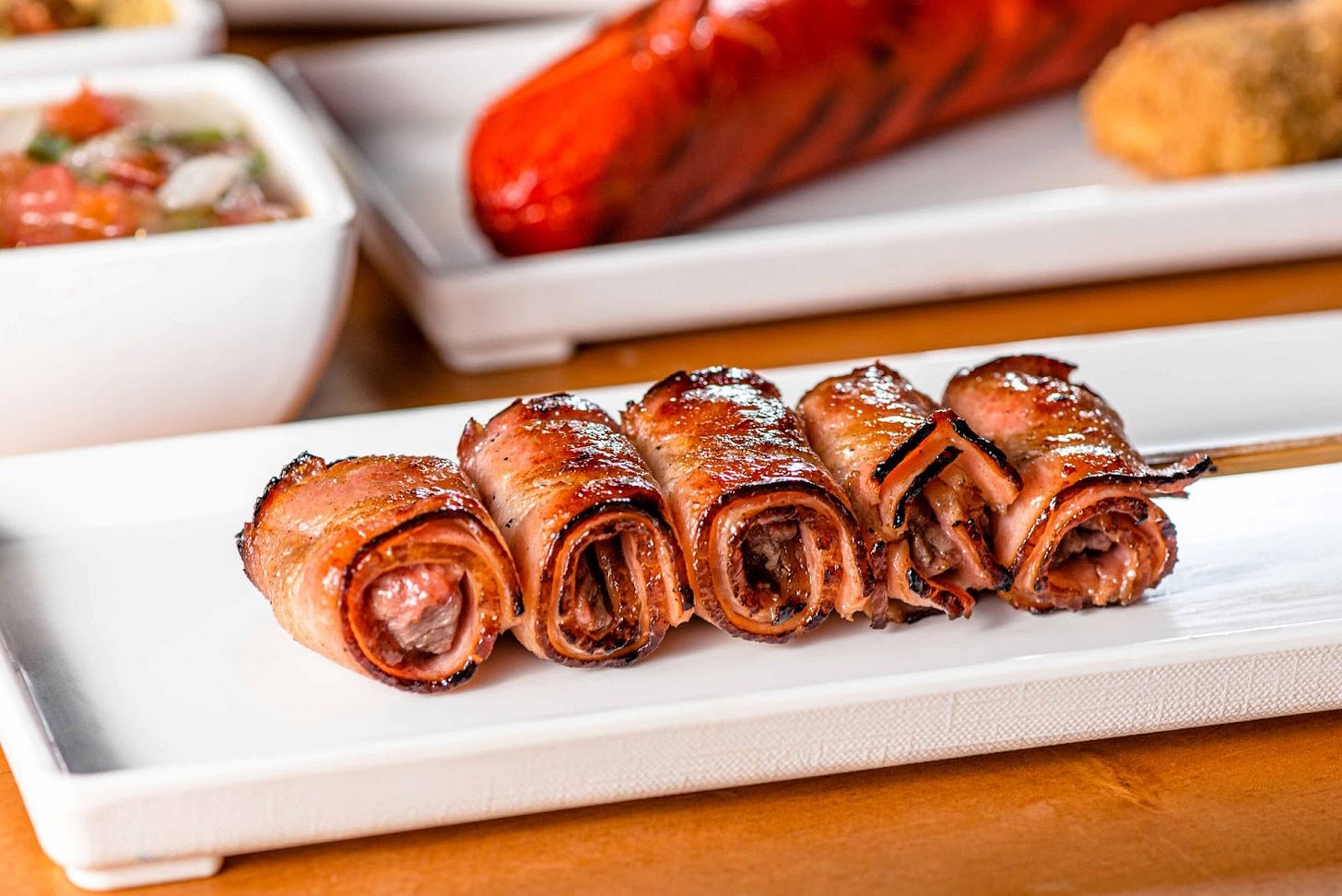 O Espetto Carioca, rede de bares e restaurantes especializada em espetinhos de churrasco, oferece um cardápio recheado, com pratos individuais e para compartilhar. A sugestão é escolher um dos carros-chefes da casa, pelo valor de R$ 16,95 é possível se deliciar com o espeto de carne com bacon, um clássico que contém 100g e acompanha farofa e molho.