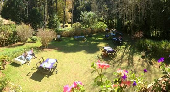 Todo o ambiente é rústico e aconchegante, dá vontade de passar horas lendo um livro e apreciando as delícias do lugar.