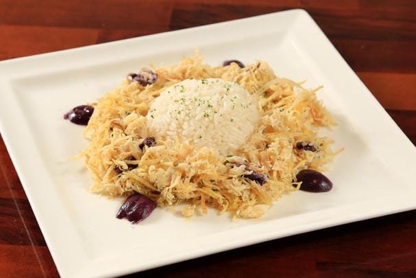 O bacalhau ao forno, servido com lombo do bacalhau grelhado na chapa e finalizado no forno com brócolis, batatas, ovos, azeitonas negras e muito azeite, é um dos queridinhos e a porção serve duas pessoas e é acompanhado de arroz branco.
