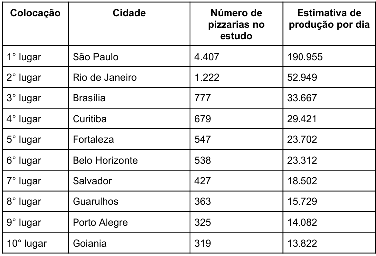 São Paulo permanece com o título de capital da pizza, com a responsabilidade de produzir 190.555 mil pizzas por dia.