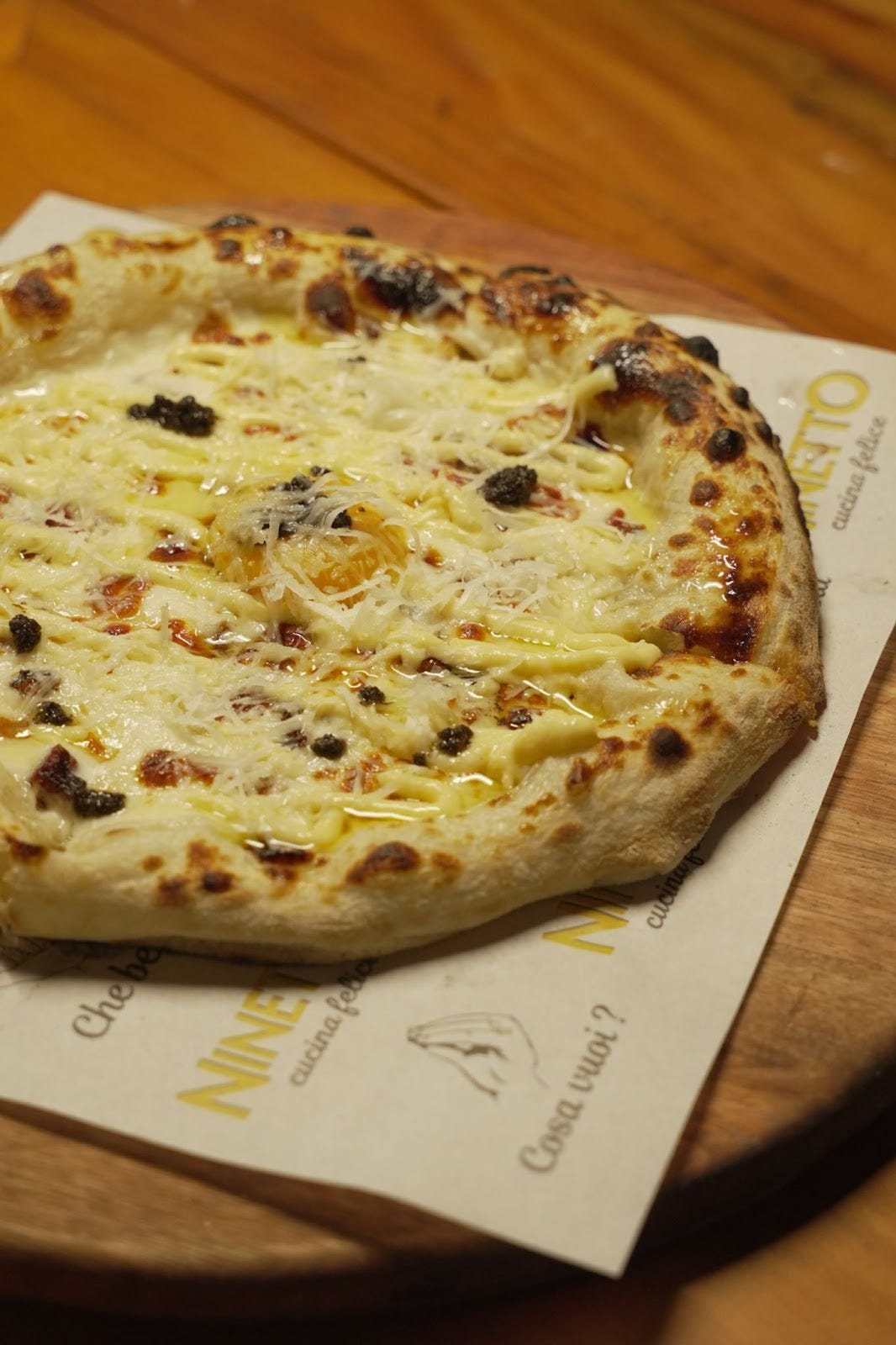 Proporcionando uma experiência gastronômica sofisticada e saborosa, a pizza Carbonara Tartufata (R$69) do Ninetto Trattoria é inesquecível. Preparada com massa de fermentação natural, mozzarella fiore di latte, pancetta curada, ovos estalados e salsa de trufa, essa pizza é um verdadeiro deleite para os sentidos. A combinação cria um sabor único e indulgente, ideal para quem aprecia a alta gastronomia italiana.