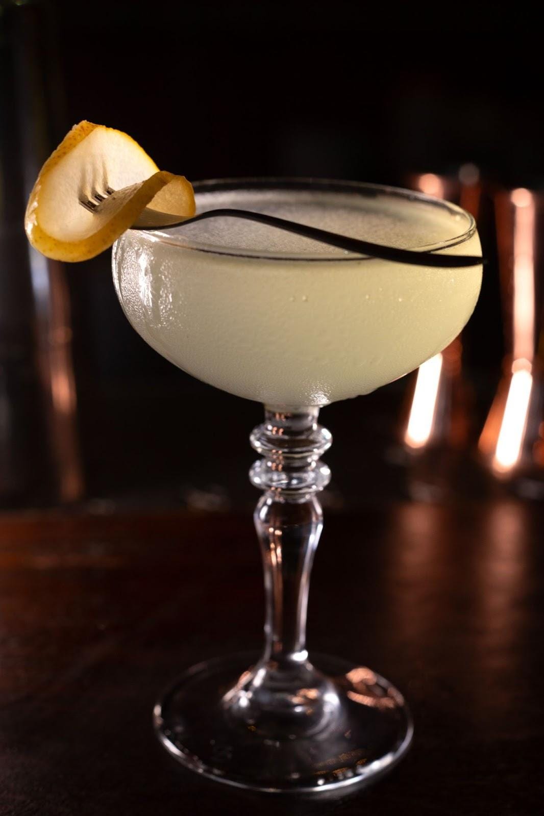 Em uma coqueteleira com gelo, adicione todos os ingredientes e bata bem. Coe duas vezes e sirva em uma taça coupet resfriada. Finalize decorando com o picles de pera no palito.