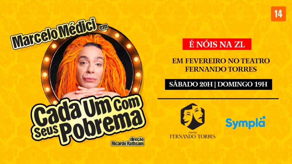Marcelo Medici tem mais de 30 anos de carreira no teatro, televisão e cinema, mas é com Cada Um Com Seus Pobrema que ele conquistou um lugar especial no coração do público. A peça, que estreou em 2004 e já foi vista por mais de um milhão de espectadores, voltou para uma temporada comemorativa de 20 anos, inicialmente prevista para poucas apresentações. O sucesso, porém, garantiu sua prorrogação e agora a montagem chega ao Tatuapé para seguir arrancando gargalhadas.