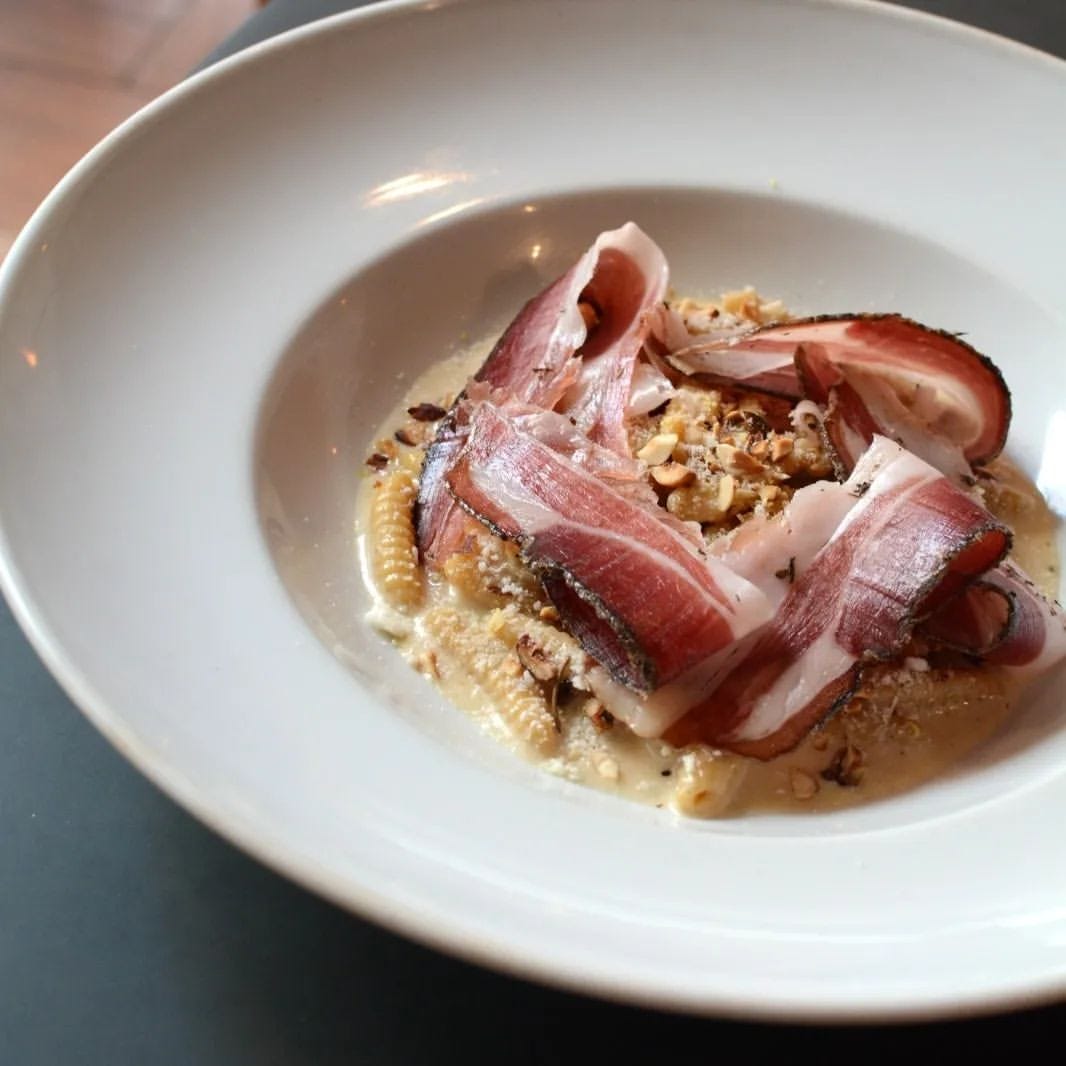No coração do Tatuapé, a Casa Rios, cozinha de fogo e brasa comandada pelo chef Rodrigo Aguiar traz o irreverente Cavatelli, tulha e spek, prato feito com cavatelli fresco, emulsão de creme de leite fresco atalaia, queijo tulha, avelã e lâminas de Speck 12 meses Jais charcutaria (R$105,00).