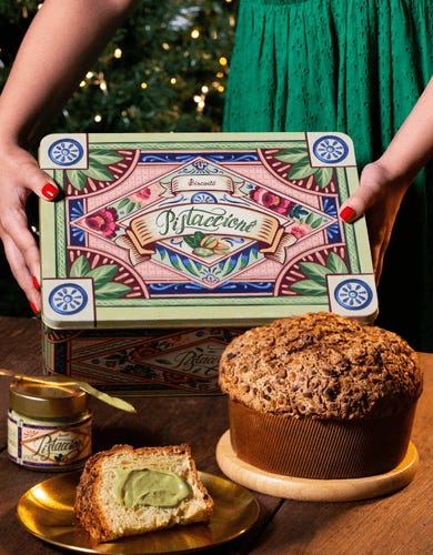 Pistaccionê (R$ 229,90): Massa úmida - o que achamos um diferencial entre as que costumam enviar cremes junto, como se o mesmo sozinho fosse suficiente, além disso, a cobertura com pistache traz um mix de crocância. O creme é incrível e… cremoso haha. A embalagem por si já é um presente, mas ainda vem espátula dourada e o potinho do pistache é de vidro. A marca pensou em tudo!!!