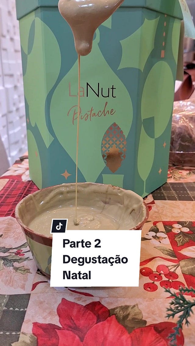 O Panettone Premium LaNut Pistache (R$129,90 para Cacau Lovers) é o queridinho do momento! Ele é esse viral todo que está na internet, podem acreditar! O Panettone é feito com gotas de chocolate ao leite e coberto por muitoooo chocolate. A atração principal é o pote de fondue de pistache que acompanha o produto. O creme é extremamente saboroso com um toque de chocolate branco e a crocância dos pedacinhos de pistache. Precisa aquecer 20 segundos no microondas para adicionar às fatias. O time Brunch foi BEM feliz nessa hora. Essa delícia conquistou os nossos corações!
