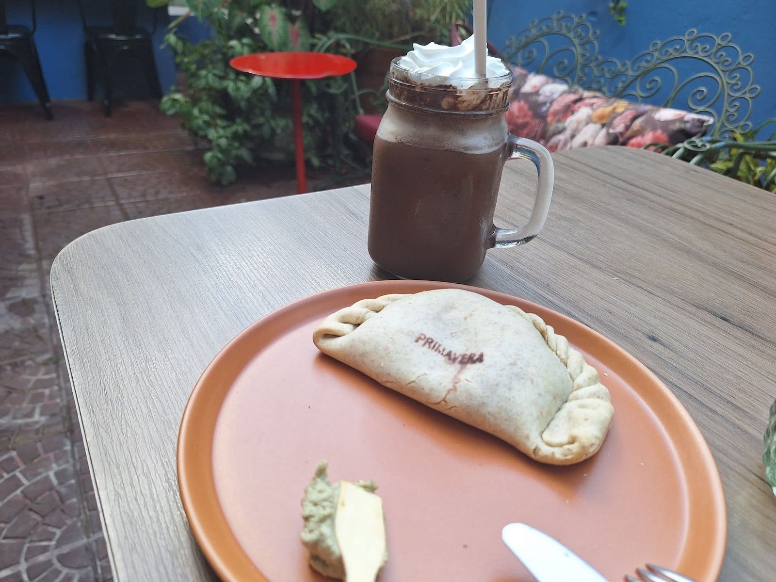 E por falar em café, pedimos o Moccacino muito bem servido e uma Empanada Primavera.