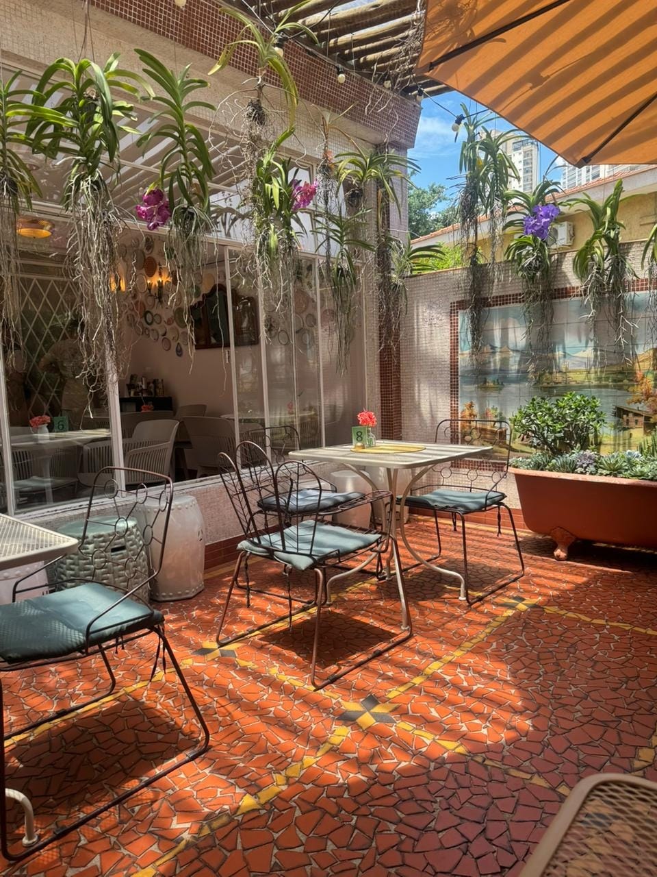 O espaço é amplo, arejado e extremamente agradável. Funciona perfeitamente para diferentes momentos do dia: dá para marcar um café despretensioso, almoçar na varanda ensolarada, trabalhar em um cantinho charmoso de home office ou até realizar eventos reservados em um ambiente intimista. Outro ponto que conquista é o fato de ser pet friendly, o que deixa a experiência ainda mais leve e descontraída.