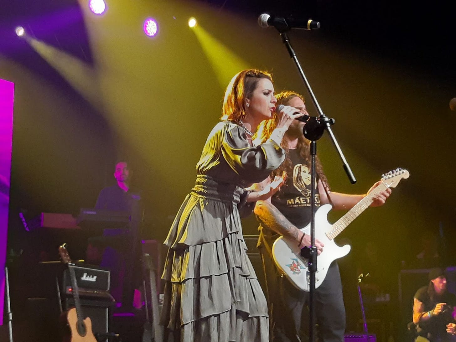 “Quando o Andreas Kisser anunciou sua comadre, já logo sabia que a musa estava por vir, afinal, o músico, assim como Pat, são padrinhos do filho da Sandy. Naquele momento, estava próxima ao photo pit, espaço dedicado à imprensa, mas não seria o suficiente, então em menos de 10 segundos, já tinha encontrado um lugar perfeito colada ao palco. Então tudo ficou ainda mais lindo e cheiroso. A rainha entrou e performou Nothing Else Matters, do Metallica. Ela pode tudo, e consegue! Que espetáculo! Que simpatia! Que mulher! Que artista! Tudo passou como um flash, mas me certifiquei de aproveitar cada segundo daquela proximidade”.