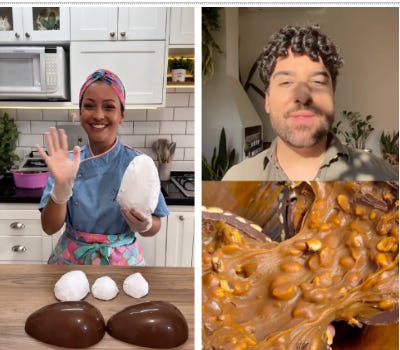 Entre os destaques está Laís, do perfil laiscakedesign, especialista em confeitaria, que compartilha orientações essenciais para evitar erros comuns no preparo para seus mais de 224 mil fãs. Em um de seus conteúdos, ela explica por que o papel alumínio não é a melhor escolha para embalar ovos de Páscoa e apresenta o papel chumbo como alternativa mais eficiente para preservar sabor, textura e qualidade do chocolate. A criadora compartilha também outra dica para acertar no recheio dos ovos de Páscoa, indicando a quantidade ideal para cada tamanho de casca. No vídeo, ela explica como equilibrar o recheio sem exageros, garantindo um resultado mais uniforme, saboroso e com acabamento profissional.
