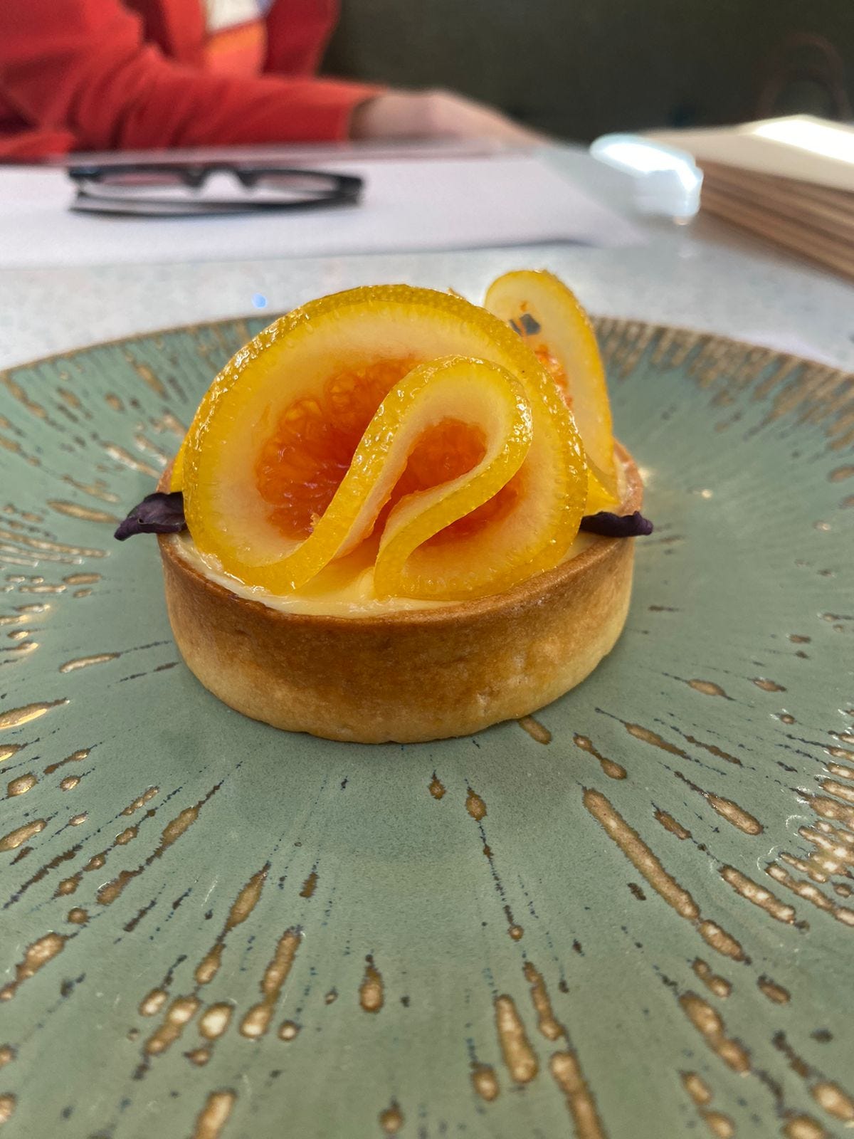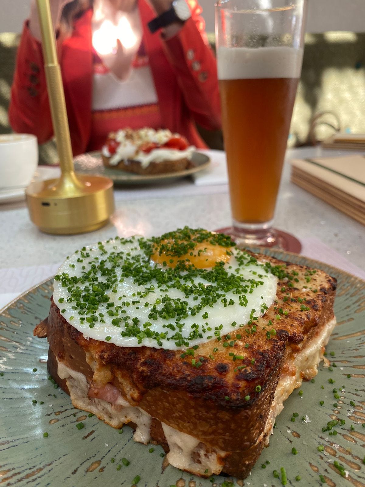 Croque madame e chá mate com tangerina